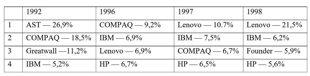 Legend не собиралась останавливаться на достигнутом. В 1993 году выходит персональный компьютер на основе 586 архитектуры. Он также стал настоящим бестселлером. Именно благодаря этому компания Lenovo становится мощным поставщиком компьютерной техники в Китае.