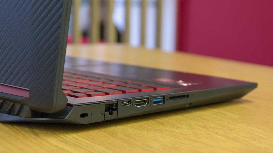 Учитывая его учетные данные игрового ноутбука, Nitro 5 не хватает портов. На задней грани Nitro 5 также нет никаких соединений, что далеко от совершенства, если вы пытаетесь предотвратить засорение кабелей на рабочем столе.