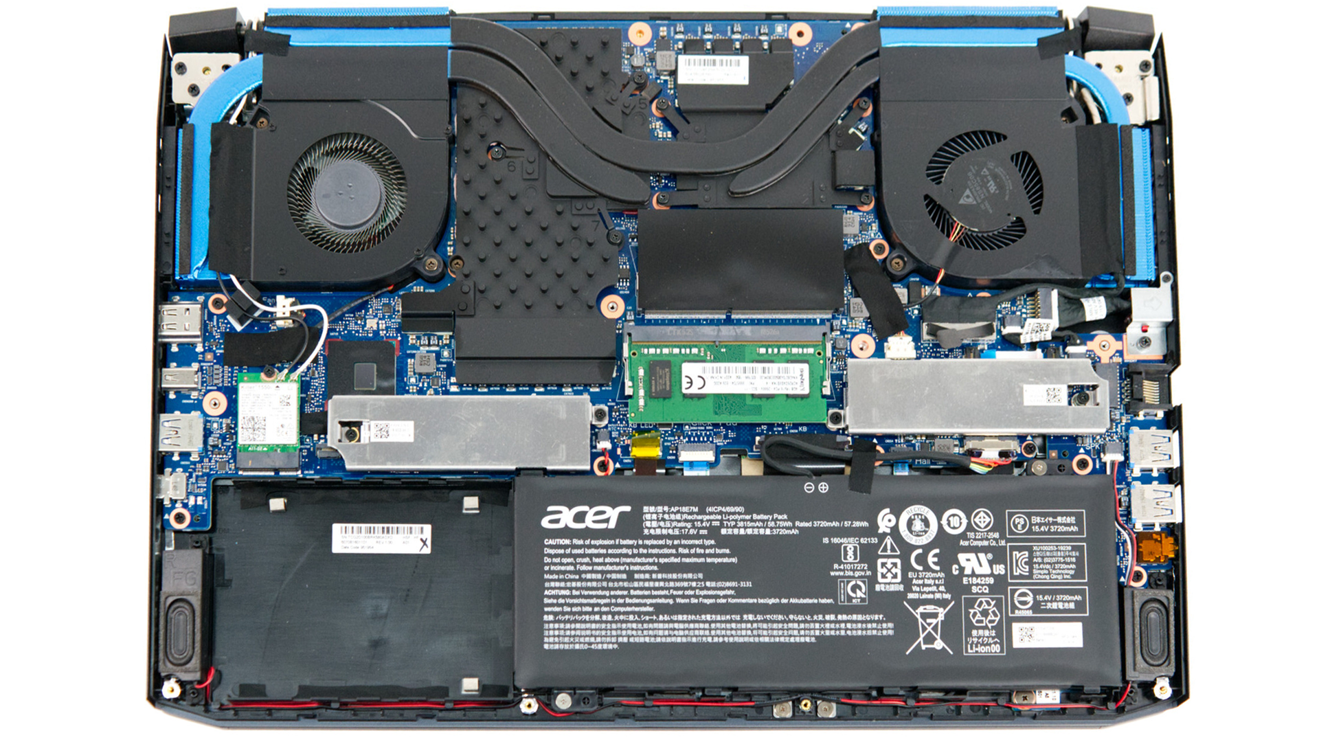 Но небольшая наклейка рядом с кнопкой питания имеет секрет, который объясняет, почему эта машина не подходит по толщине. На нем изображена рука, надвигающаяся на клавиатуру. Когда вы делаете, клавиатура скользит вниз до конца шасси, а палуба и тачпад становятся упором для запястья. Acer называет это своей клавиатурой «HyperDrift», и когда клавиатура отсоединяется от компьютера, это также позволяет увеличить поток воздуха. Отсоединение клавиатуры также показывает дополнительный вентилятор на входе и выходе и декоративное освещение над тепловыми трубками. Мы подробнее рассмотрим, как каждый из них работает ниже.
