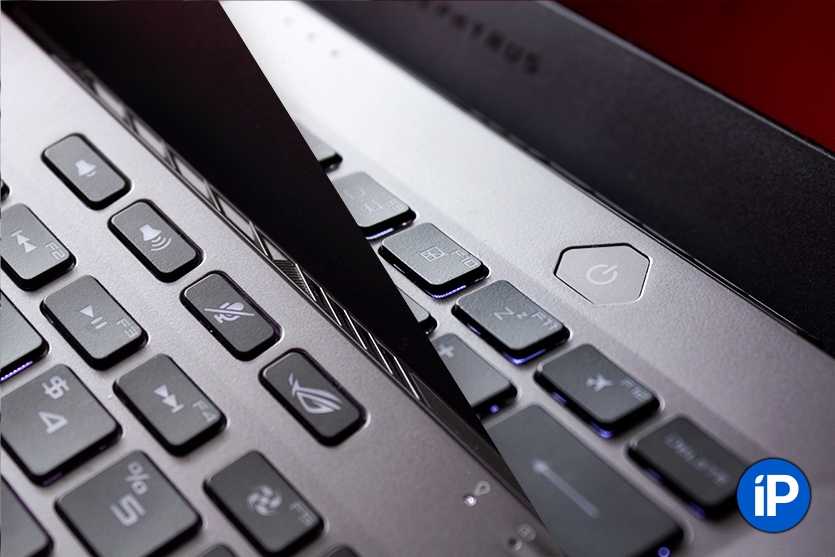 Кнопки громкости удобно вынесли наверх вместе с клавишей панели управления от ASUS. Через неё можно управлять подсветкой, режимами охлаждения и другими функциями.