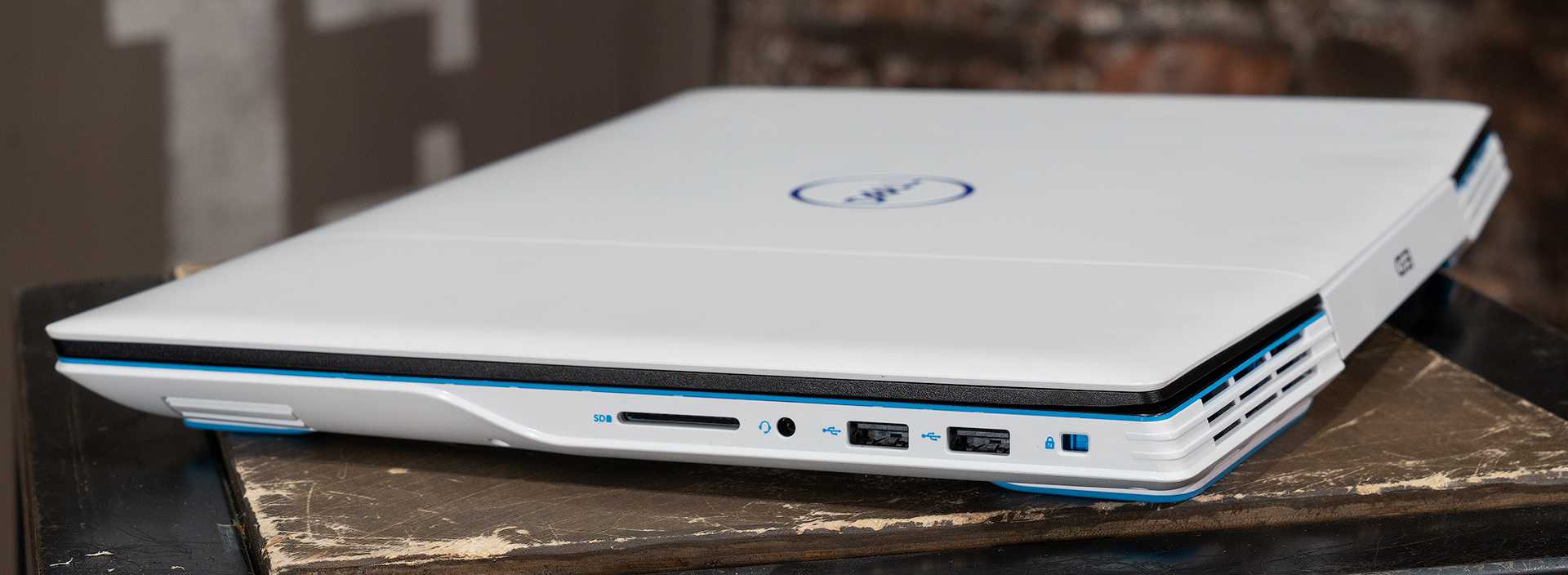 Было бы странно обделять игровой ноутбук портами — размеры позволяют разгуляться. В случае с Dell G3 3500 так оно и получается. На левой стороне корпуса находится разъём для адаптера питания, Mini DisplayPort, HDMI, USB 3.1, сетевой RJ-45 и USB Type-C с поддержкой Thunderbolt 3. Справа есть два USB 2.0, комбинированный аудиоразъём и считыватель для SD-карт.