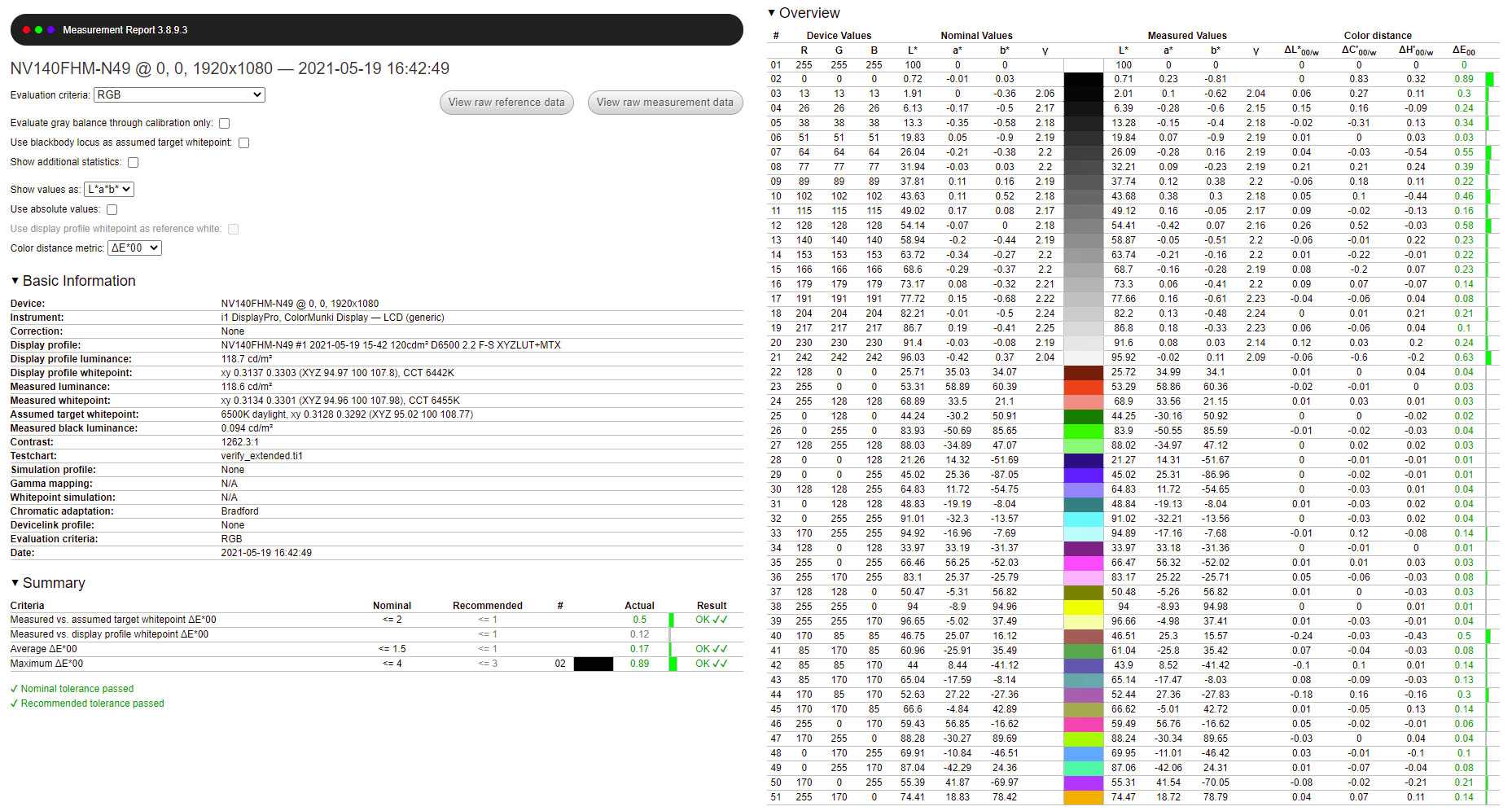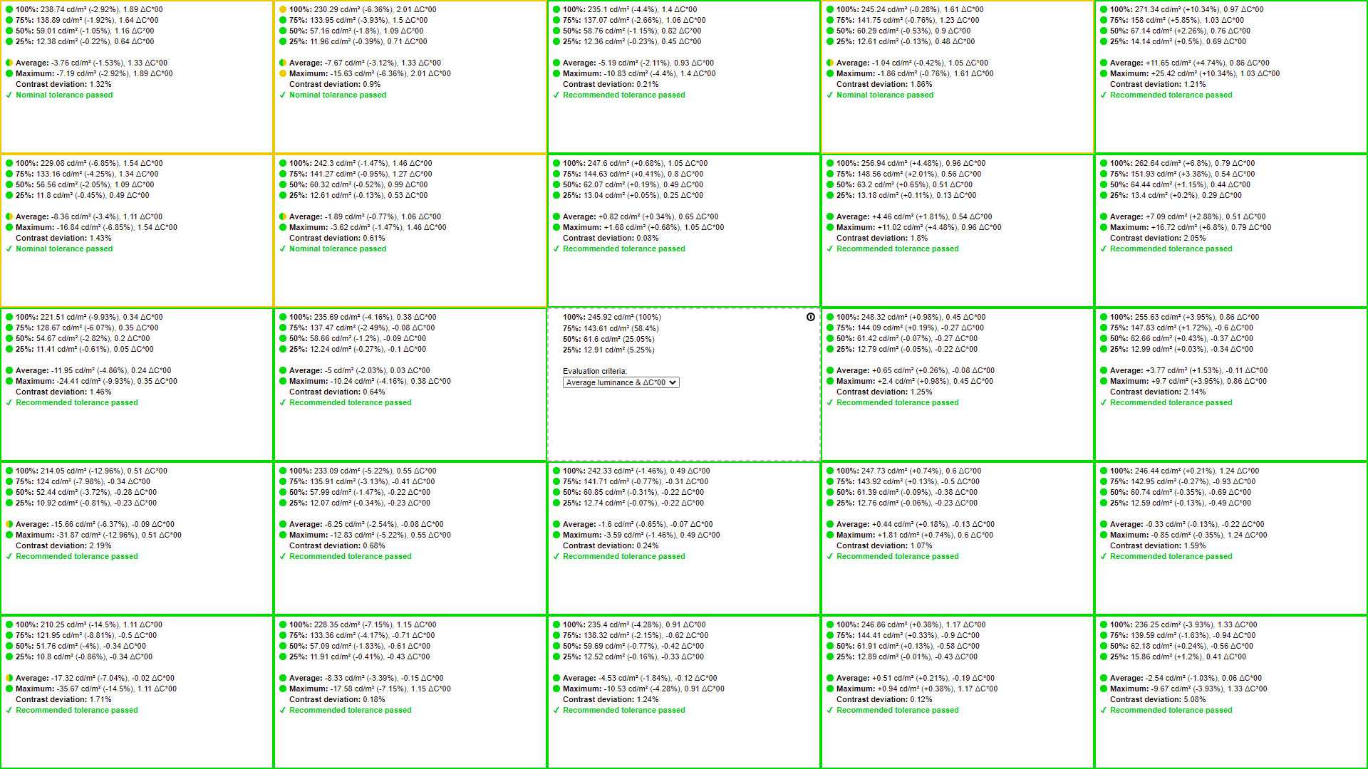 При этом расширенный тест правильности отображения оттенков дал вполне хорошие результаты с минимальными отклонениями от эталонов.