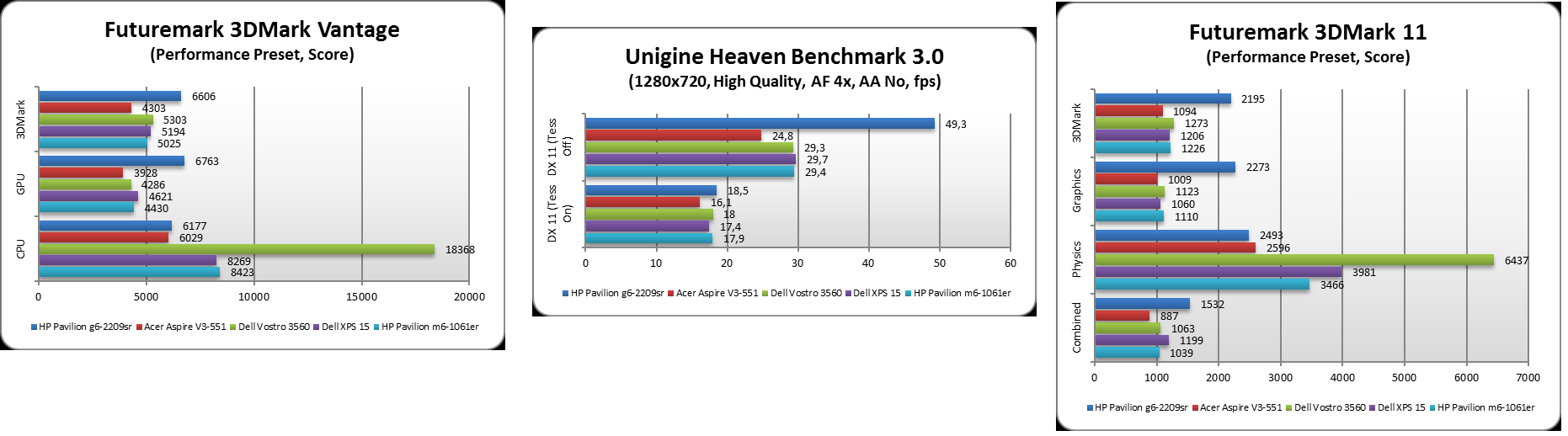 Рис. 11. Сравнение результатов ноутбуков в бенчмарках