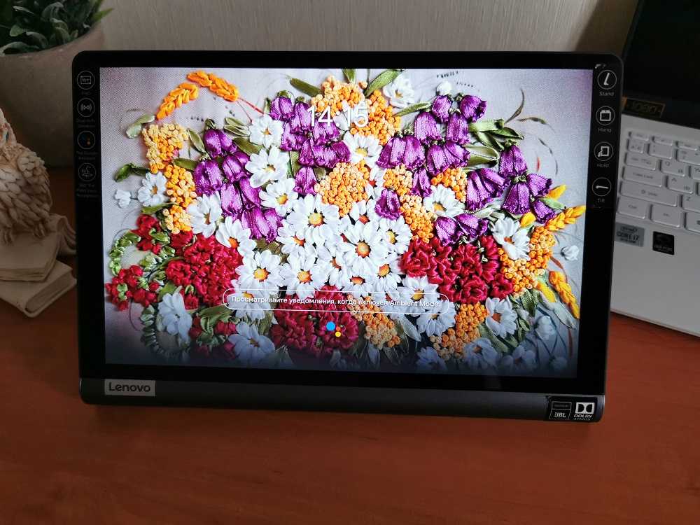 Lenovo Yoga Smart Tab оснащен 10,1-дюймовым IPS ЖК-дисплеем с разрешением 1200 x 1920 пикселей с соотношением сторон 16:10 и плотностью пикселей 224 ppi. Несмотря на Full HD разрешение дисплей выглядит неплохо, имеет большие углы обзора.