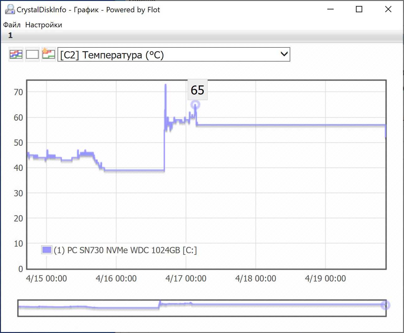 Установлен SSD накопитель объёмом 1 ТБ – это модель от Western Digital серии SN730 M.2 2280 c интерфейсом NVMe Gen3 X4, с достаточно высокими заявленными скоростями.