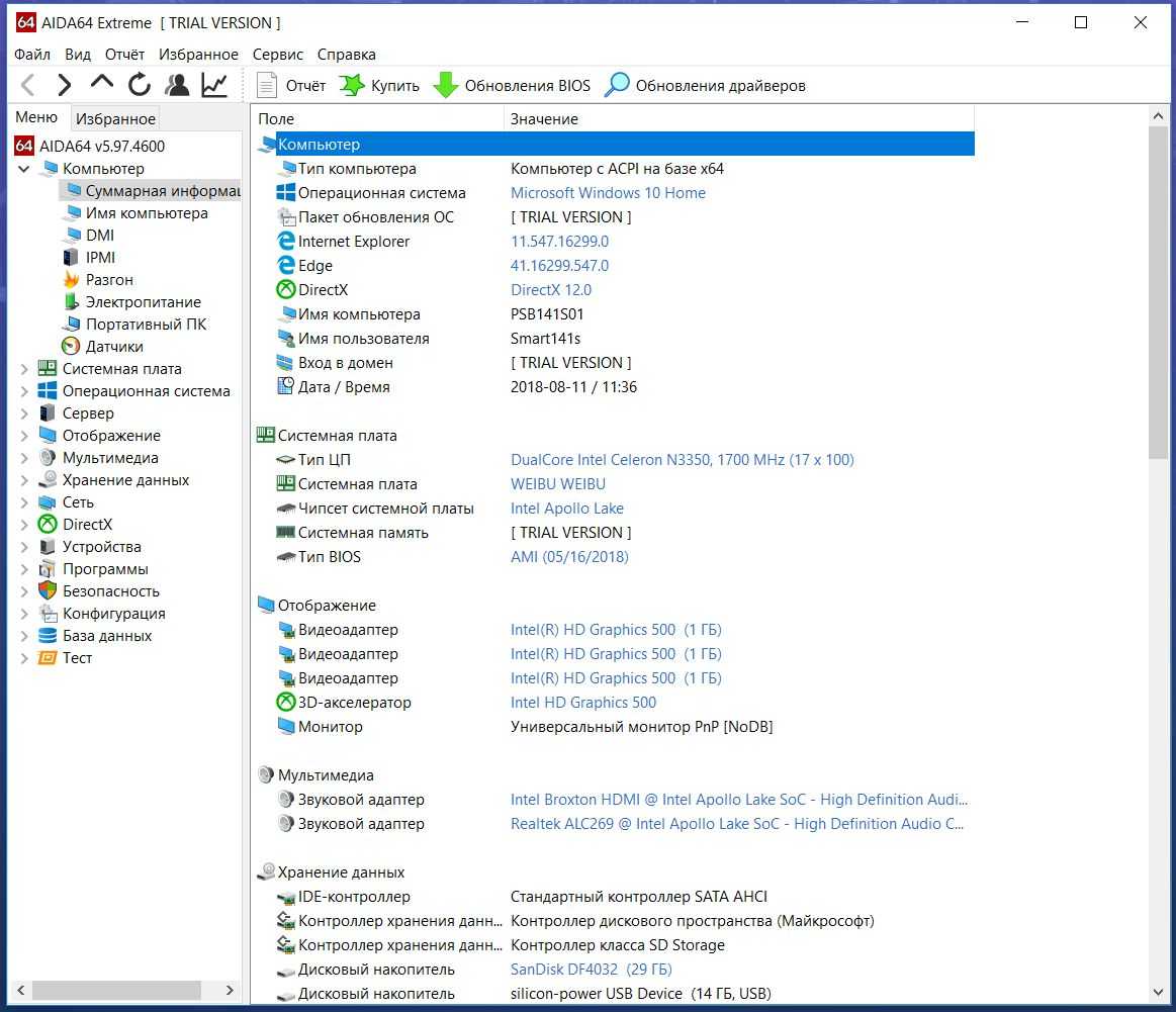 В этом разделе мы ненадолго остановимся о железной начинке Smartbook 141S и ее возможностях. Сердцем устройства является хорошо зарекомендовавший себя в недорогих устройствах двухъядерный процессор Intel Celeron N3350 (1,1 ГГц). Под нагрузкой он способен поднимать частоту до 2,3 ГГц, что вполне достаточно для большинства повседневных задач и даже 3D игр. Основная особенность данного CPU — экономное расходование ресурсов батареи при достаточной производительности. При этом, интегрированная графическая карта Intel HD Graphics N500 прекрасно справляется как с видео в разрешении Full HD, так и с не очень ресурсоемкими 3D-играми.
