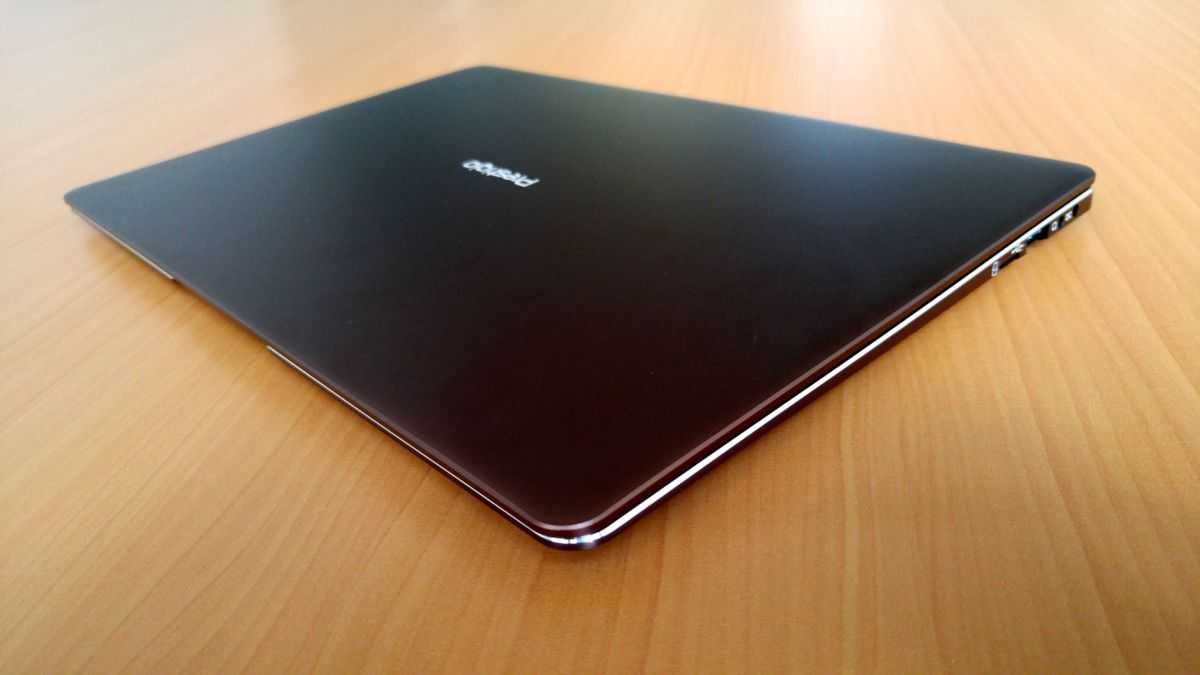 Ноутбук Prestigio SmartBook 141S имеет современный тонкий корпус из прочного авиационного алюминия и продуманное расположение элементов. В сложенном состоянии его размер практически равен листу бумаги А4. Небольшая толщина (13 мм) позволит носить его даже в дамской сумочке. Вместе с тем стоит учитывать не такой уж маленький вес — 1,4 кг, что обусловлено весьма емкой батареей на 5000 мА ч.