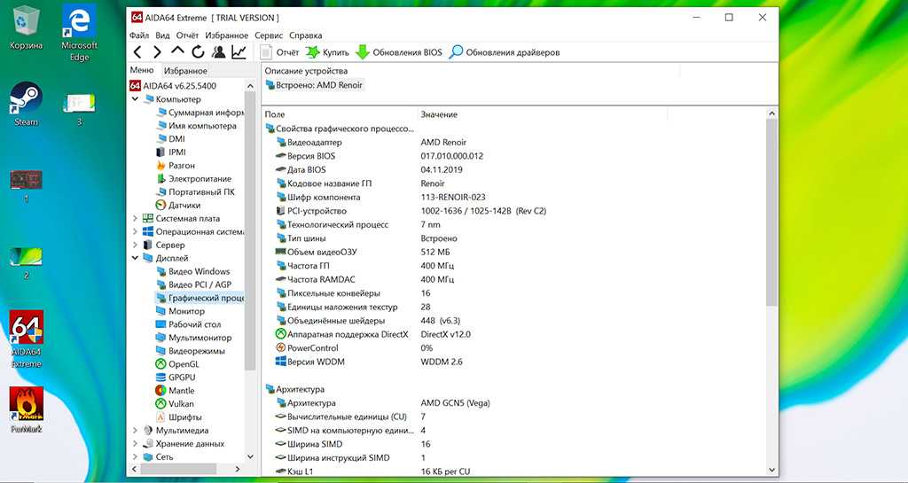 За видео отвечает интегрированное решение от Radeon, объём видеопамяти 512 Мб.