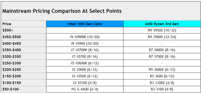 Знание цен позволяет нам провести приблизительное сравнение новейших массовых процессоров Intel и AMD.