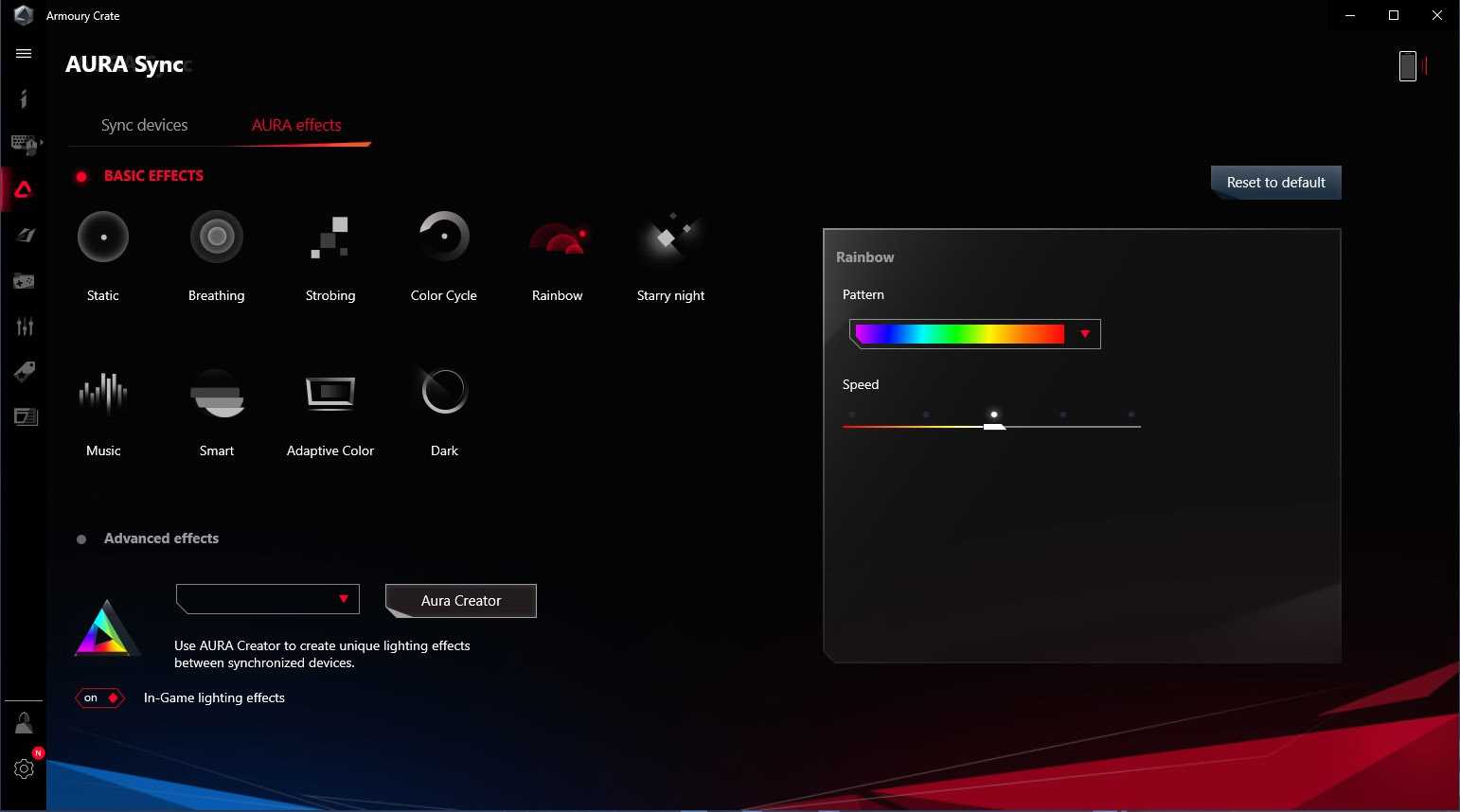 В приложении ROG есть отдельный раздел с нужными настройками – можно даже редактировать и создавать свои по-настоящему сложные эффекты.
