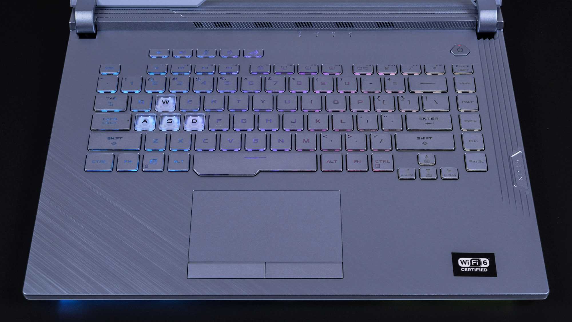 Специально для подсветки кнопки клавиатуры сделаны в этой модели с прозрачными боковинами, а WASD и вовсе полностью прозрачными для их выделения. В затемнённом помещении эффект подсветки клавиатуры смотрится очень ярко.