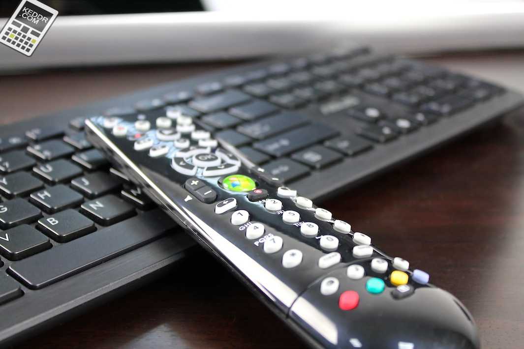 В комплекте с моноблоком есть и беспроводные клавиатура, мышь и вышеупомянутый пульт. Если клавиатура с мышью матовые и не маркие, то пульт глянцевый и быстро покрывается отпечатками. Как быстро его покроют царапины и потертости, естественно, зависит от пользования, но мне кажется, что долго ждать этого момента не придется. Кнопки на пластиковом пульте все резиновые, кроме кнопки с логотипом Windows (7, кстати, не 8), она силиконовая. Нажимать на кнопки удобно, и расположены они на хорошем расстоянии друг от друга (а то видал я неудобные пульты).