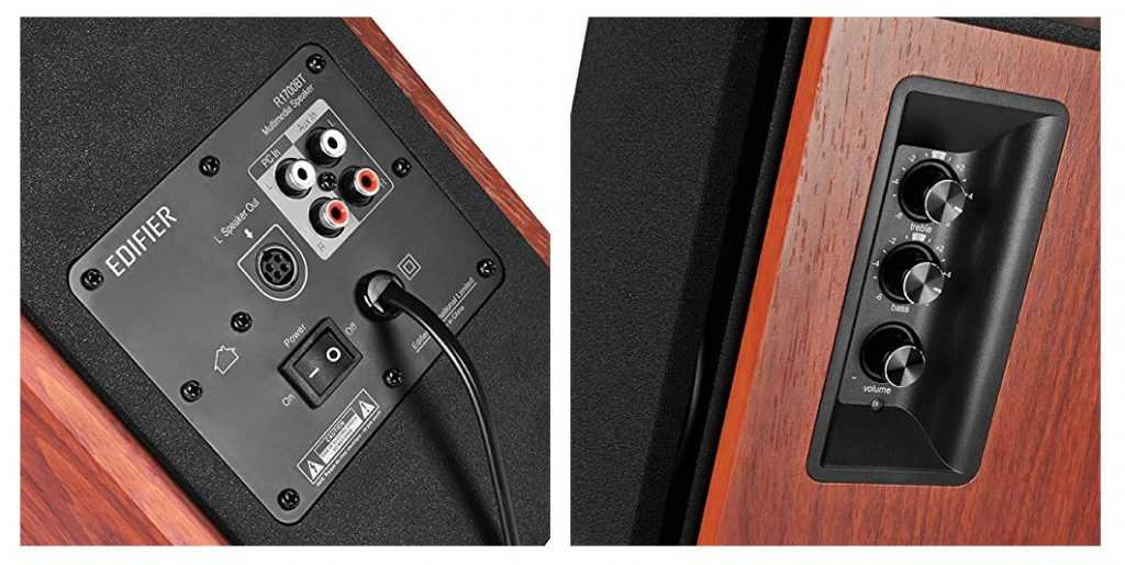 Колонки R1280T имеют лучшую отделку и отличное качество сборки. Его размер уменьшен, учитывая, что он имеет мощность 42 Вт. Его размеры 19 сантиметров в ширину, 23 в высоту и всего 14 сантиметров в глубину. Он также предлагает нам возможность управлять басами в соответствии с типом музыки, которую мы слушаем. Дизайн этих Edifiers классический, но очень удачный. Он сделан из винила цвета ореха, а черный корпус выглядит довольно стильно.