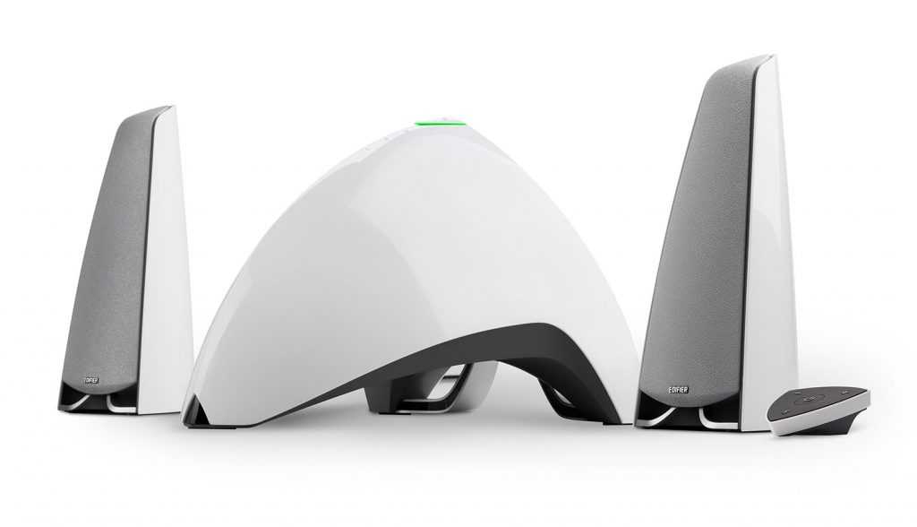 Дизайн этих динамиков весьма впечатляющий. Динамики представляют собой два черных или серебряных рожка, а управляющая часть представляет собой довольно симпатичную призму. Кроме того, они достаточно функциональны, поскольку форма динамика также разработана таким образом, чтобы распределение звука было более однородным и охватывающим.