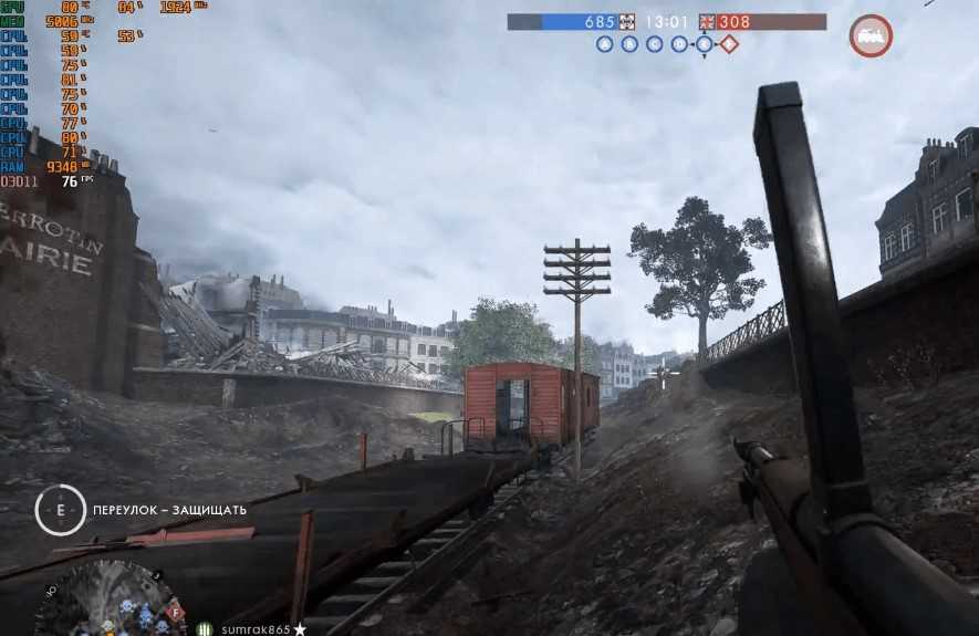 Ещё хочется привести как пример популярную игру Battlefield 1. В ней загрузка видеокарты GTX 1080 процессором FX9370 также была до 90% (хотя и сам работал на пределе)