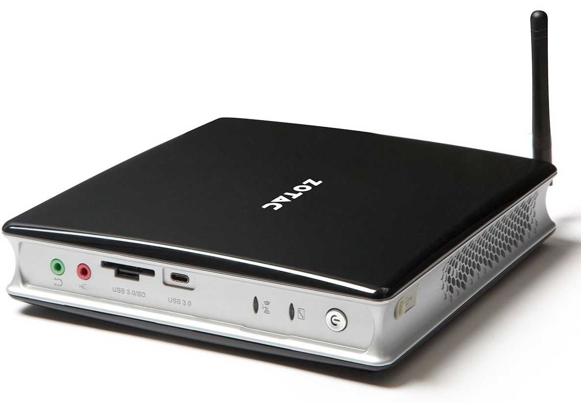 Отличным предложением в выбранном бюджете при стоимости чуть ниже 10 000 рублей может стать ZBOX BI323, производимый гонконгской компанией Zotac, последние 10 лет уверенно чувствующей себя на рынке компьютерного железа. Неттоп получил более мощный четырехъядерный процессор Intel N3150 с тактовой частотой от 1,6 до 2,08 ГГц. Максимальный объем устанавливаемой памяти составляет 8 ГБ, а для ее размещения присутствуют уже два слота DDR3L-1600. Графика и звук — интегрированные. Присутствуют место для установки 2,5-дюймового накопителя (HDD или SSD) и слот SD / SDHC / SDXC. Видеовыходы представлены HDMI, DisplayPort и VGA, аудио — стереовыходом и входом на 3,5-мм мини-джеках, а порты USB: одним Type-C, двумя 3.0 и одним 2.0.