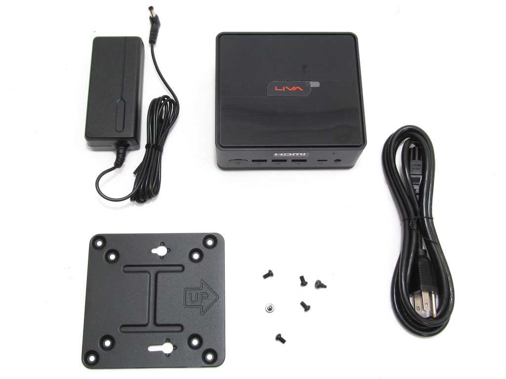 Комплект поставки очень «голый», но включает все необходимое, чтобы включить систему и установить ее на заднюю часть телевизора. В отличие от ранее рассмотренных модулей LIVA Z, этот не включает диск с драйверами, что имеет смысл, поскольку в нем отсутствует дисковод оптических дисков. Однако, чтобы заменить диск с драйверами, маленький USB-накопитель с драйверами был бы приятным дополнением.