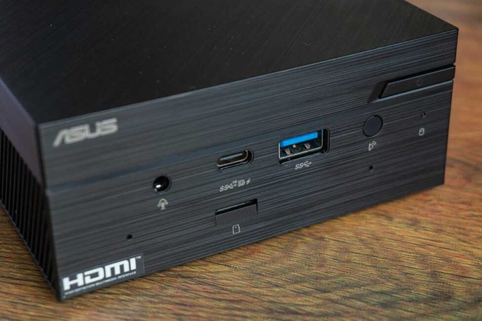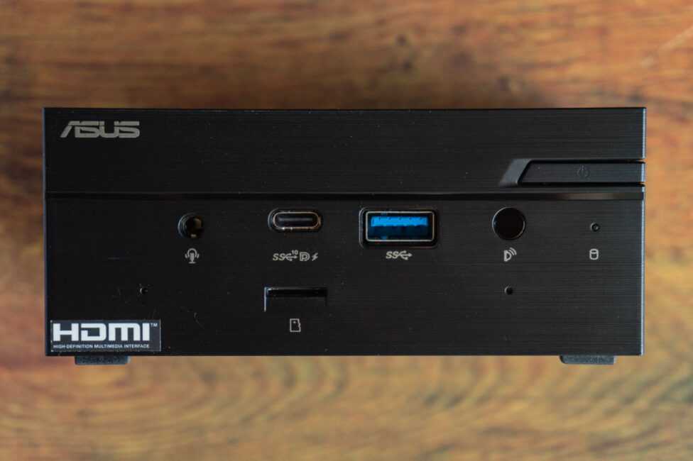 Малость пройдемся по портам. Их немало, учитывая общие габариты ASUS Mini PC PN50. Круто, что есть кардридер. Он хоть и не для полноценных SD-карт, но лучше пусть так, чем вообще без него. Также можно отметить и то, что всего к одному PN50 можно подключить до 4-х мониторов с разрешением 4K, используя пару USB-C, HDMI и DisplayPort (если вместо него, конечно, не будет какой-то другой разъем). Плюс «малютка» поддерживает вывод изображения в максимальном разрешении 8K: до 30 Гц через DisplayPort и до 60 Гц – через DisplayPort Dual-Mode (DP++).