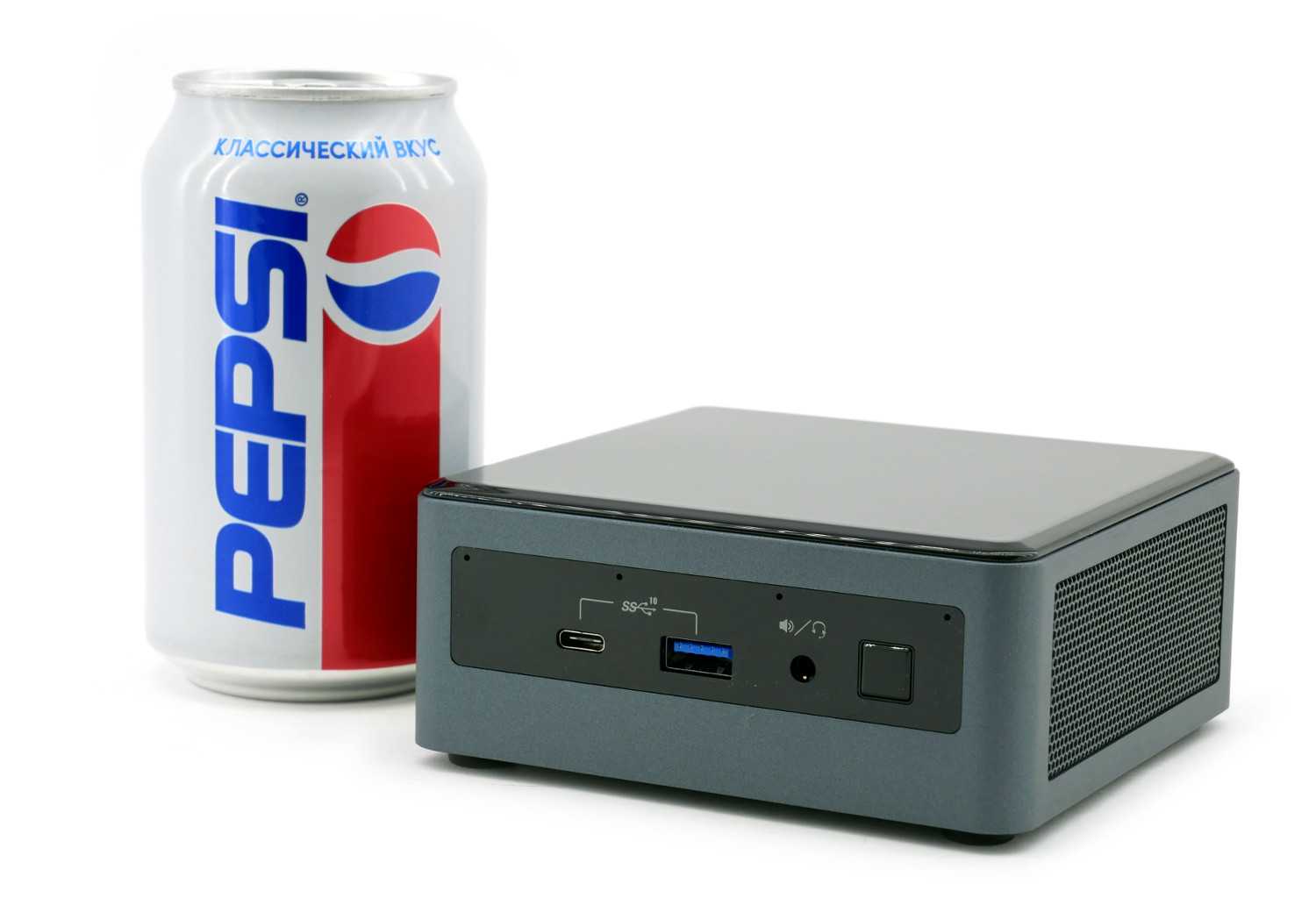 Для дальнейшего понимания, что же такое мини-компьютер Intel NUC и рассматриваемая модель Intel BXNUC10i7FNH2 в частности, стоит произвести сравнение данной платформы со знакомым каждому читателю объектом, например, баночкой Coca-Cola (ее заменила PEPSI в нашем случае).
