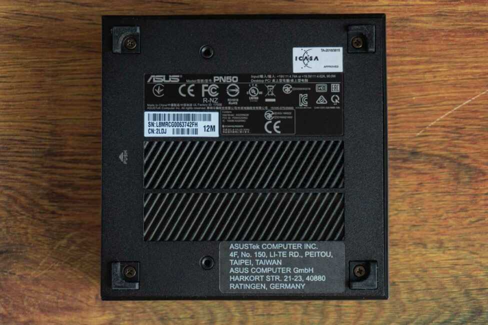 Цвет корпуса в нашем случае черный и именно такой вариант присутствует в продаже. Хотя на сайте производителя упоминается и белый, правда вот на каких рынках будет доступен этот цвет — неясно. Даже изображений ASUS Mini PC PN50 в таком цвете очень мало, но судя по тем, такие есть — смотрится вполне симпатично.