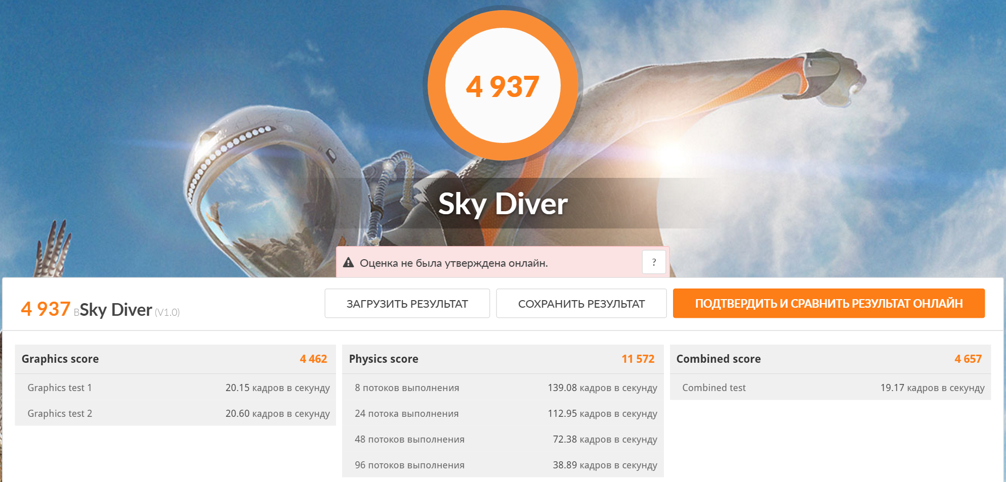 Синтетический тест игровой производительности 3DMark Sky Diver.