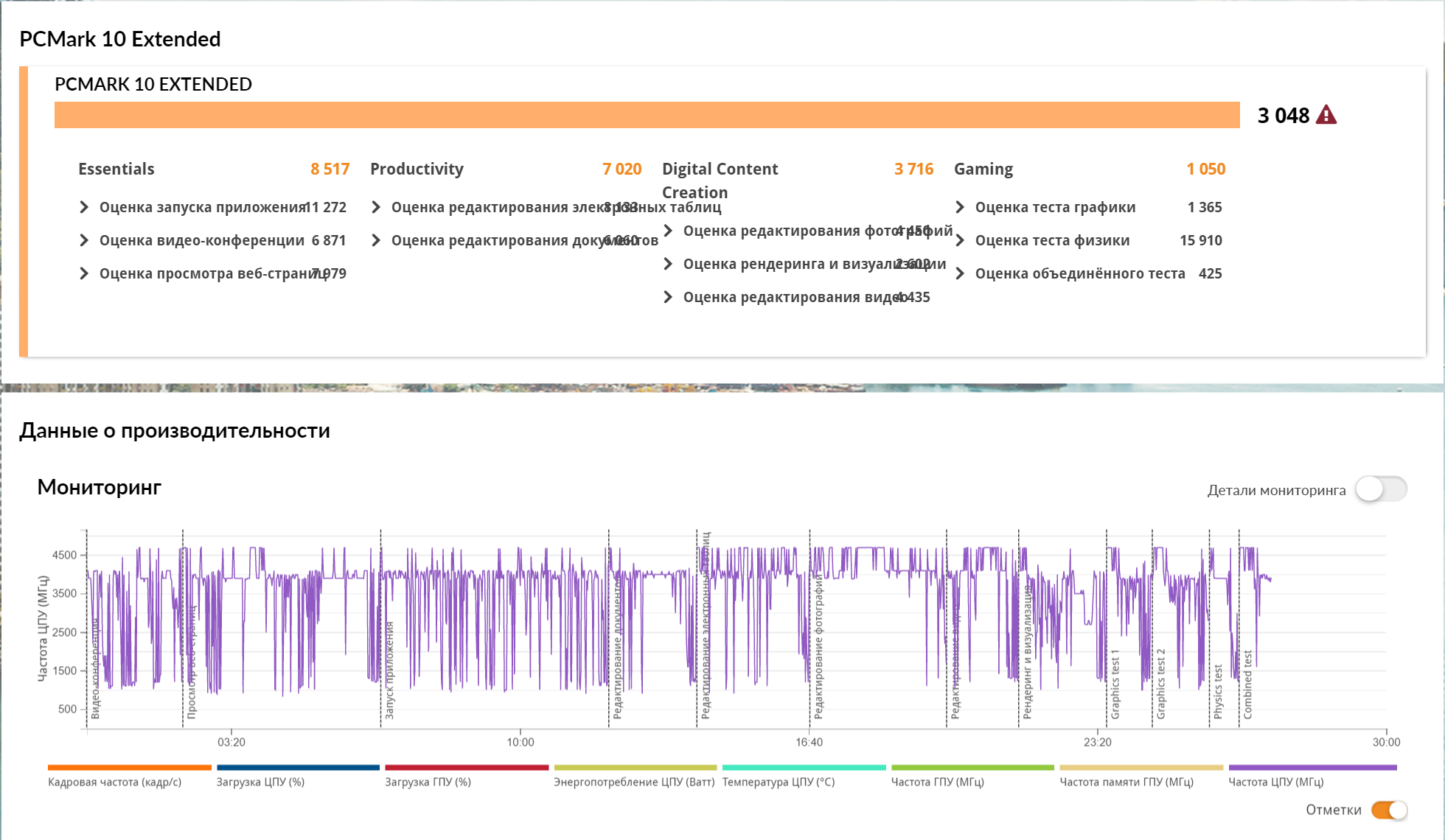 PCMark 10, расширенный режим.