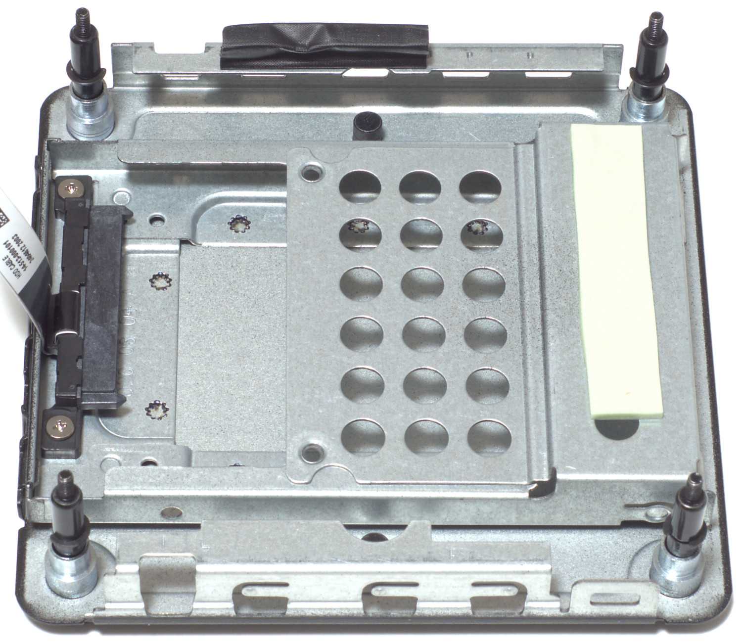 Крышка при этом не только закрывает компоненты, но и служит в качестве некого кармана под 2,5-дюймовый накопитель. Влезают как SSD, так и HDD, а крепится всё четырьмя винтами. Главное чтобы высота диска не превышала 9,5 мм. Ну а внутри самого корпуса уже есть соответствующий закрепленный интерфейс. Достаточно удобно и то, что для подключения накопителя не нужен дополнительный шлейф.