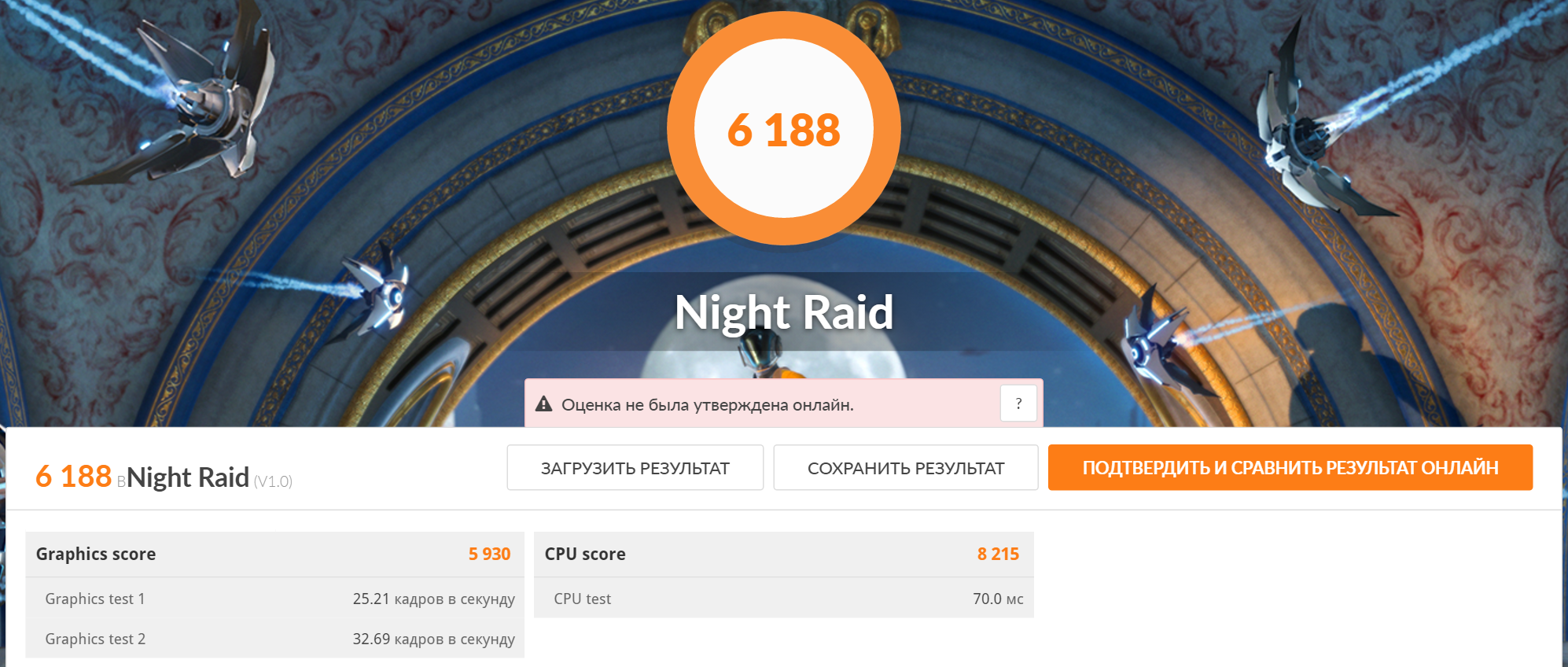 Синтетический тест игровой производительности 3DMark Night Raid.