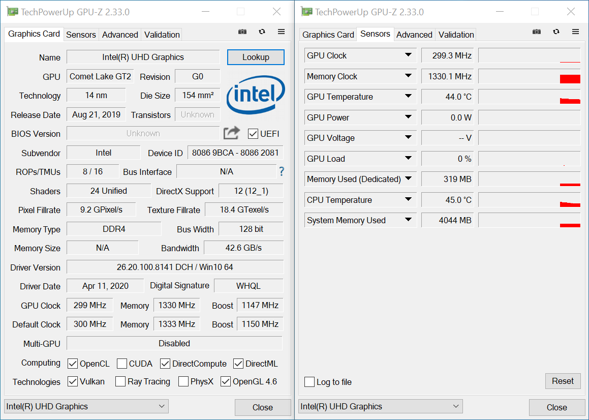 Модель Intel BXNUC10i7FNH2 использует встроенную графическую подсистему UHD Graphics 620 (Comet Lake GT2) с 24 исполнительными блоками: грубо говоря, оперирует 192 ядрами CUDA. Тактовая частота видеоядра в бусте достигает 1150 МГц, показатель TDP ограничен 15 Вт. Данное решение сложно назвать высокопроизводительным игровым решением, но с повседневными задачами она справляется бегло, да и кое-что показать в играх все же способна, но с оговорками.