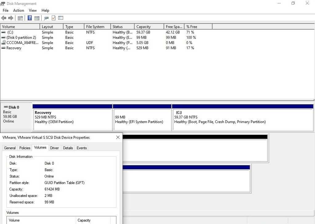 Порядок создания разделов, выбранный инсталлятором Windows 10 1909