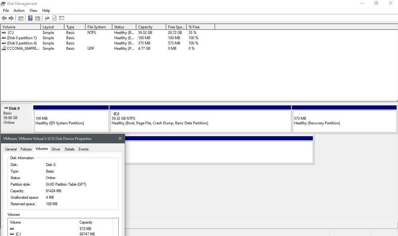 Порядок создания разделов, выбранный инсталлятором Windows 10 2004