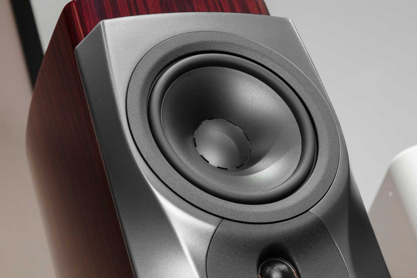 Колонки притягивают взгляд своей изумительной натуральной отделкой и симпатичной черной стальной защитной решеткой. Крышка корпуса немного наклонена назад. Под решеткой еще один сюрприз — ленточный твитер (признак недешевого аппарата). Передняя панель колонки выполнена из анодированного черным цветом алюминия. В тон панели исполнен и диффузор длинноходного СЧ/НЧ-динамика — тоже из черного анодированного алюминия. Согласуются излучатели через кроссовер с улучшенной топологией, собранный на полипропиленовых конденсаторах и электролитах с низким коэффициентом потерь, а также вручную намотанных индуктивностях.