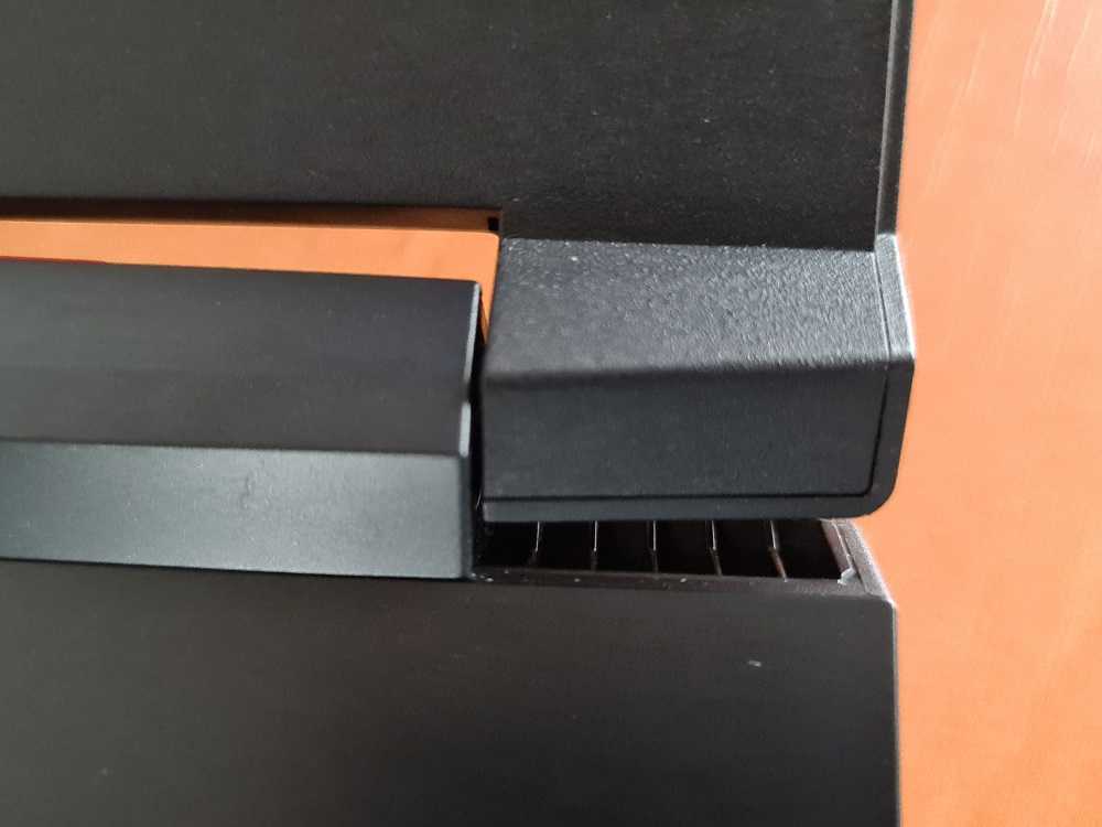 Как и предыдущий шарнир, он также выделен красным цветом. Петля проходит почти по всей длине корпуса. Вентиляционные отверстия на задней панели ноутбука придают ему футуристический вид. В сочетании с молниями на передней панели корпуса это выглядит интересно и одновременно элегантно.