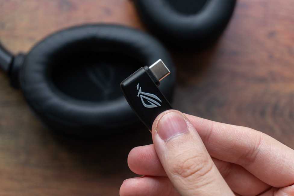 Вы уже знаете, что ASUS ROG Strix Go 2.4 — игровая гарнитура с беспроводным интерфейсом 2,4 ГГц, который реализуется при помощи адаптера с USB-C. Почему был выбран именно радиоканал, а не Bluetooth — объясняется самим производителем. В пример приводится минимальная задержка по данному протоколу передачи, а также широкий радиус действия — заявлено 20 метров.