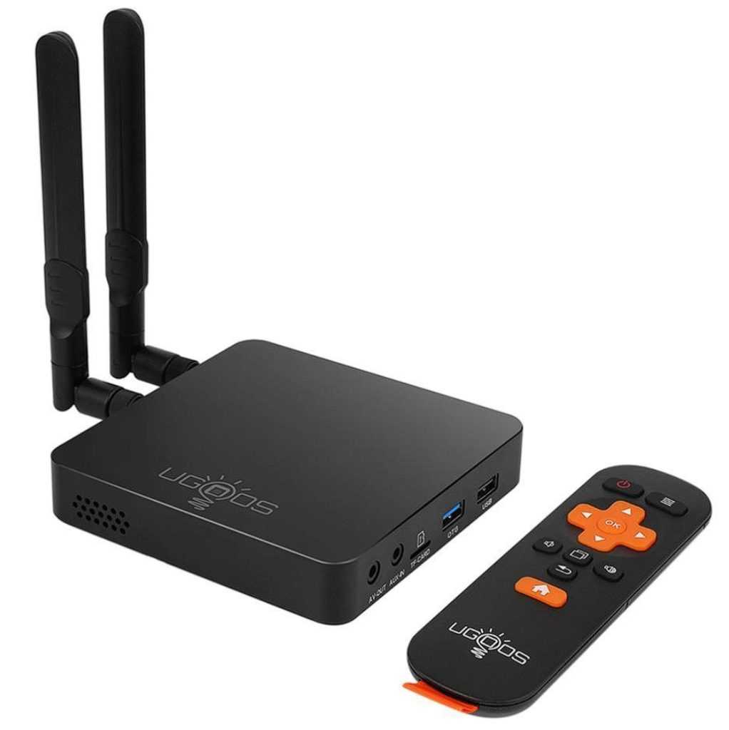 Эта приставка со встроенным DVB-T2 тюнером поддерживает разрешение 3840×2160 4K UHD и работает на Android 7. В ней есть слоты для HDMI, антенного кабеля, порт LAN, USB. Управлять устройством можно с помощью пульта или смартфона, подключенного по Wi-Fi. Доступна функция автовоспроизведения и автоотключения. Встроенной памяти здесь 8 Гб, а оперативки – 1 Гб. Производитель заявляет, что миникомпьютер может работать круглосуточно без перерыва. Предустановленные программы можно удалить, чтобы поставить свои. Встроенный цифровой тюнер поддерживает кабельное и эфирное телевещание, а программы можно записывать на съемный носитель.