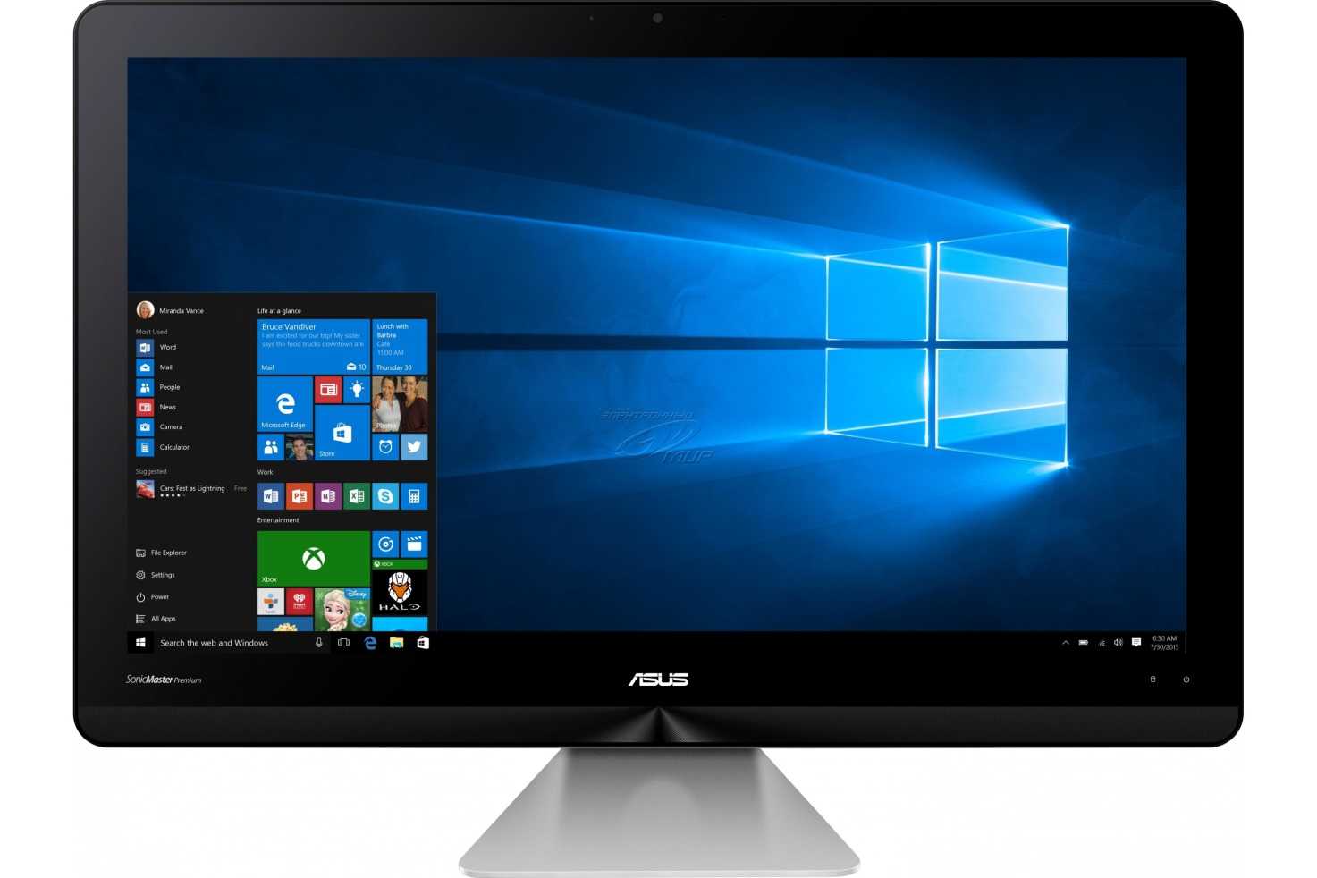 Эргономичную подставку можно устанавливать в разных положениях, чтобы работать за моноблоком было максимально удобно. Камер у компьютера две: обычная «вебка» и инфракрасная, для авторизации через распознавание лица. Также ASUS в сотрудничестве с Harman/Kardon оснастила моноблок четырьмя фазоинверторными динамиками, что позволило получить высокое качество звука.