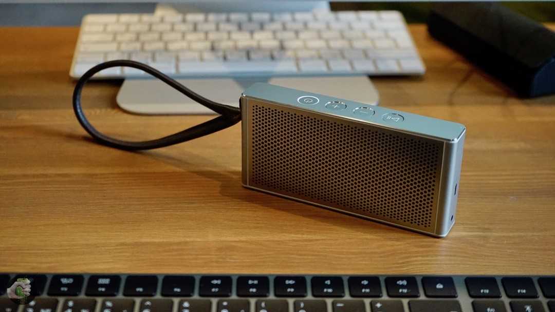 Самая лучшая портативная акустика для любителей велоспорта, пробежек и любого активного отдыха. Устройство выполнено в виде небольшой шайбы с металлическим карабином. Последний позволяет крепить колонку к поясу, рюкзаку и т.д. Как и положено подобному устройству, колонка влагозащищенная, обладает неплохой автономностью. Качество звука не на самом высоком уровне, но для своего класса вполне приемлемое.