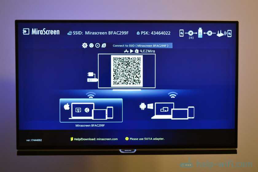На экране телевизора должен появится рабочий стол (если его можно так назвать) нашего адаптера. У меня MiraScreen MX Wireless Display.