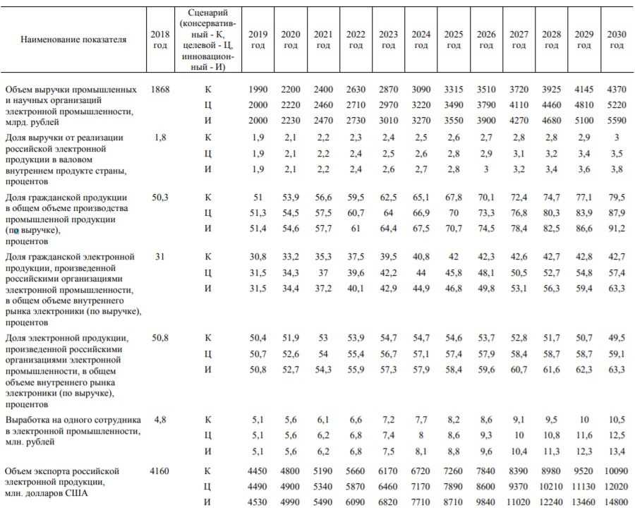 До конца 2020 г. ожидается внесение изменений в госпрограмму «Развитие электронной и радиоэлектронной промышленности» для приведения технических параметров электроники в соответствие со стратегией.