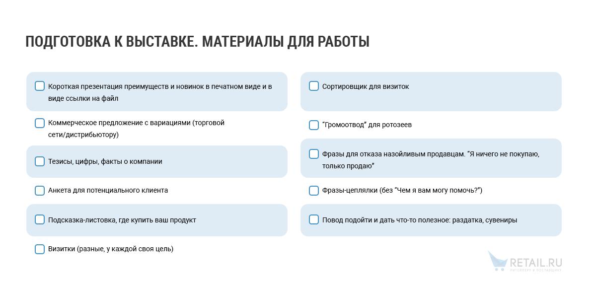 Вот несколько полезных советов для подготовки к выставке. По этой схеме мы работаем с ВЭД-проектами: