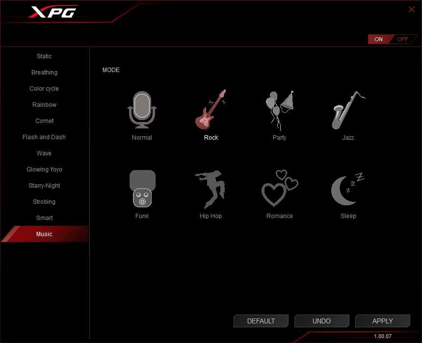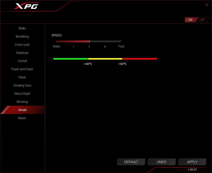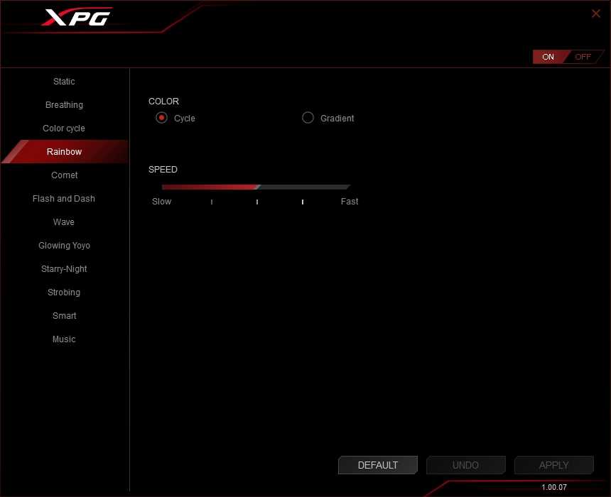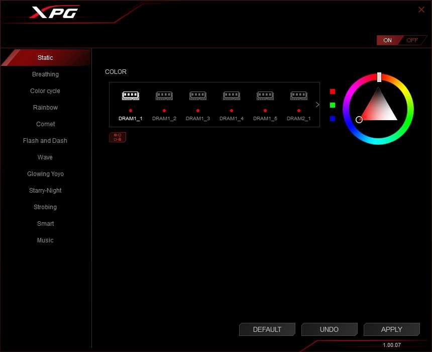 - простая и понятная программа XPG RGB Sync App для кастомизации RGB-подсветки;