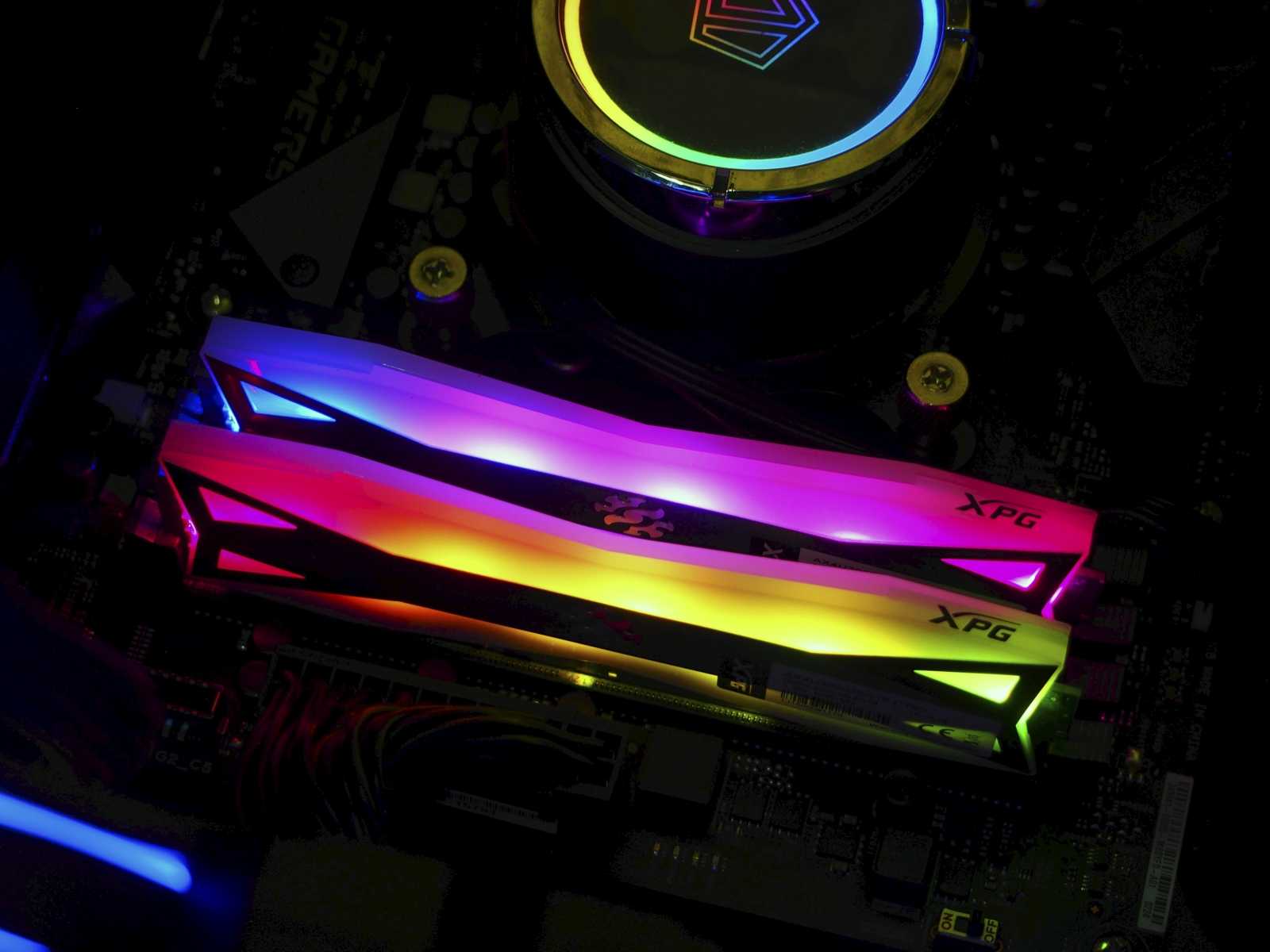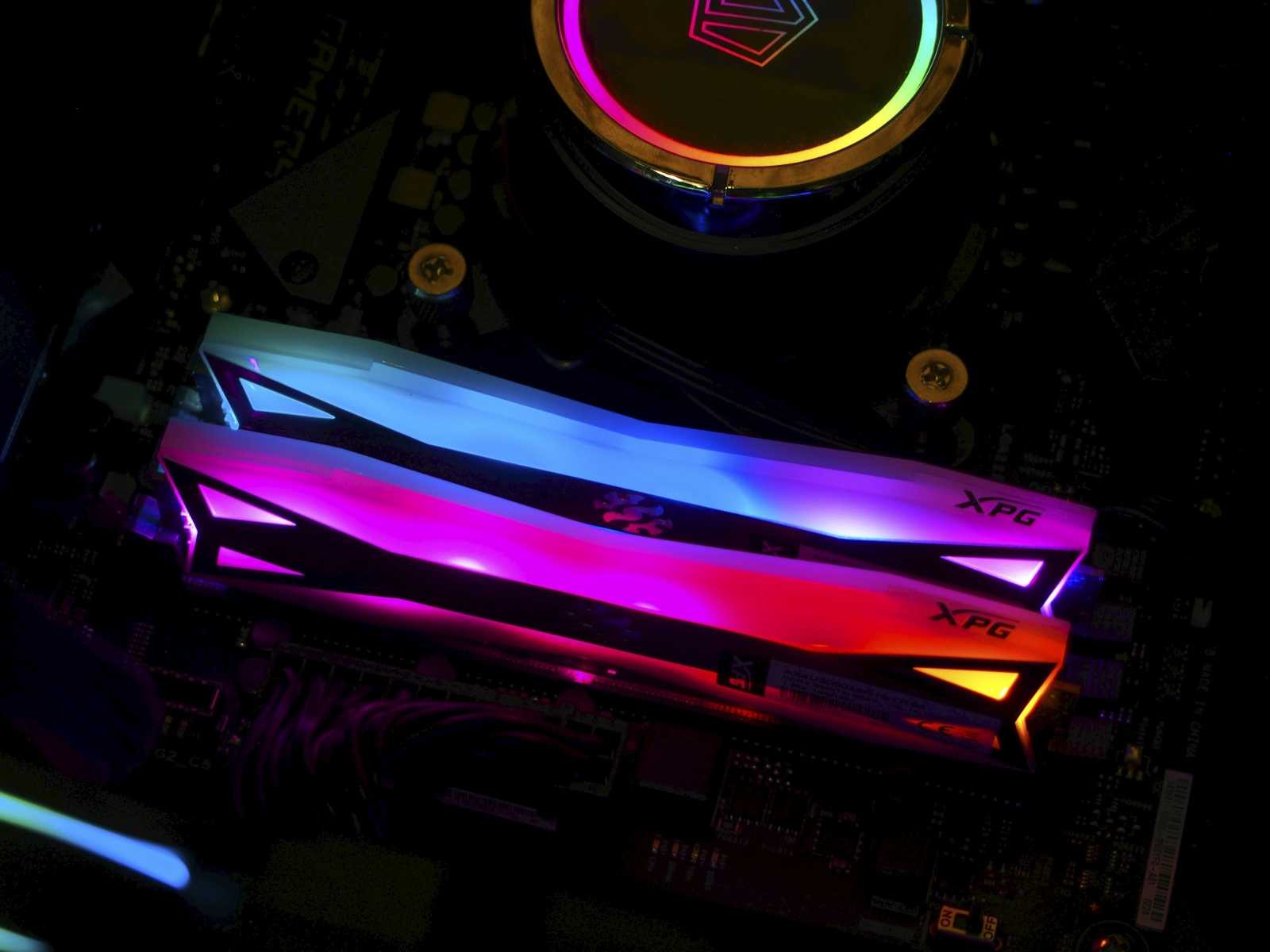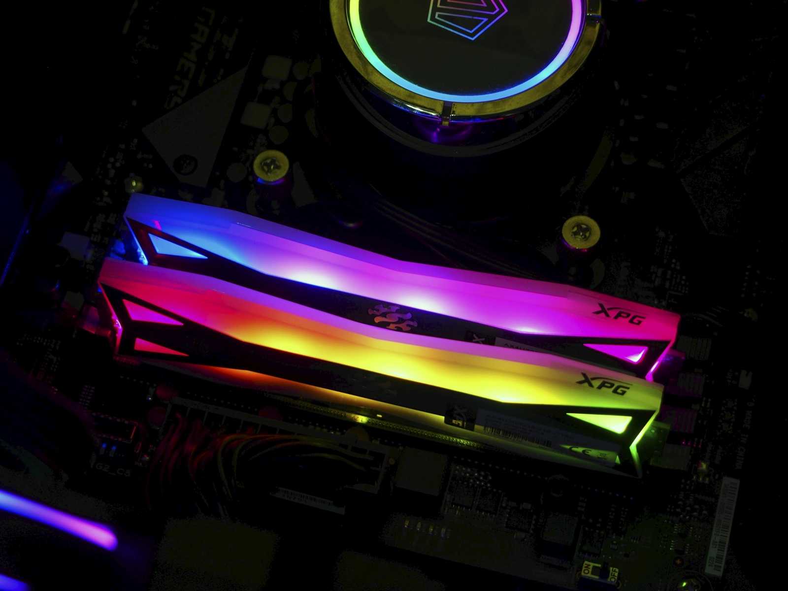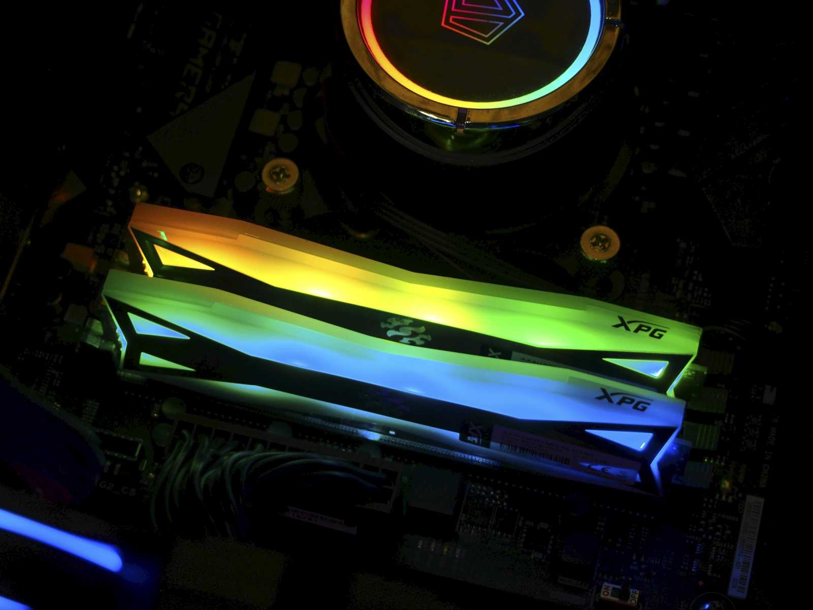 Практическая демонстрация модулей памяти XPG Spectrix D60G DDR4-3000 в рабочем состоянии показывает всю красоту ее RGB-подсветки.