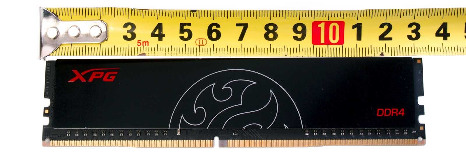 Практические замеры габаритов модулей памяти XPG Hunter DDR4-3000 частично подтвердили информацию о продукте. Длина соответствовала заявленным 133 мм.