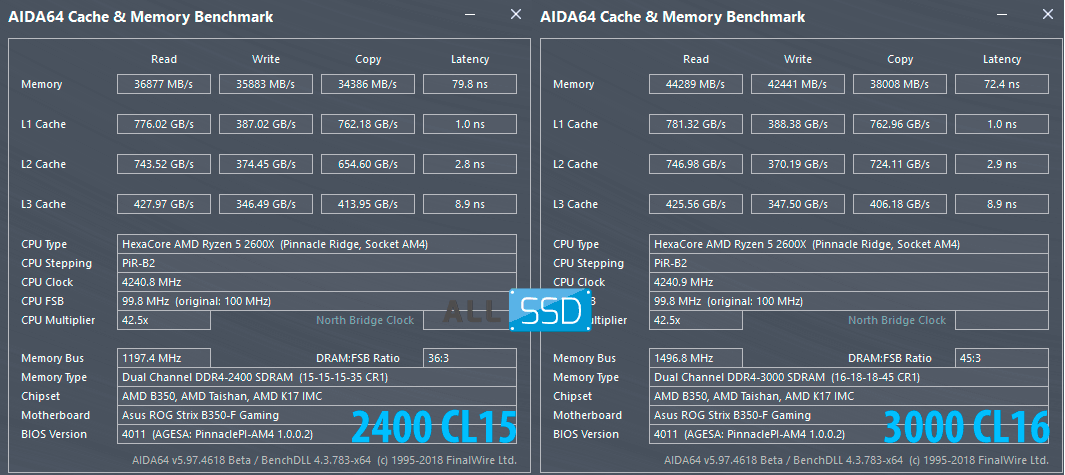 Оказалось, что без каких-либо проблем модули памяти разогнались до 3000 МГц при сохранении разумных (для бюджетных планок) таймингов в CL16-18-18. Конечно, если вы будете приобретать высокоскоростной комплект памяти сразу, у вас могут быть лучшие характеристики и останется некоторый запас для дополнительного роста частоты. Однако это очень хороший результат, полученный из недорогих планок. Обычно, высокое повышение частот приписывают памяти на микросхемах Samsung, менее популярны в этом вопросе Micron и Hynix, а о SpecTek даже не вспоминают, но как видно – зря. Производитель не отстает от своих оппонентов этом деле, а возможно и обходит их.