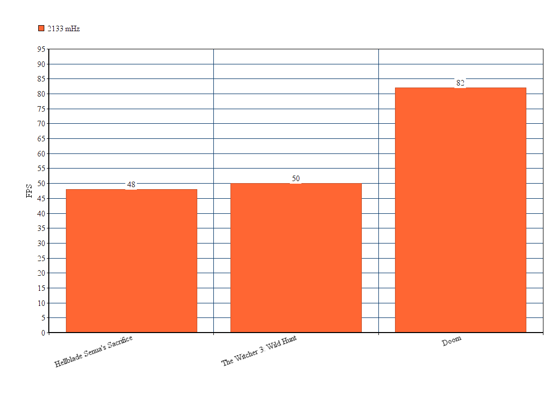 При схожих настройках и игровых моментах Hellblade Senua’s Sacrifice показала 51 к/с,The Witcher 3 — 54 к/с, Doom — 88 к/с. Прирост производительности составил в среднем 6%.