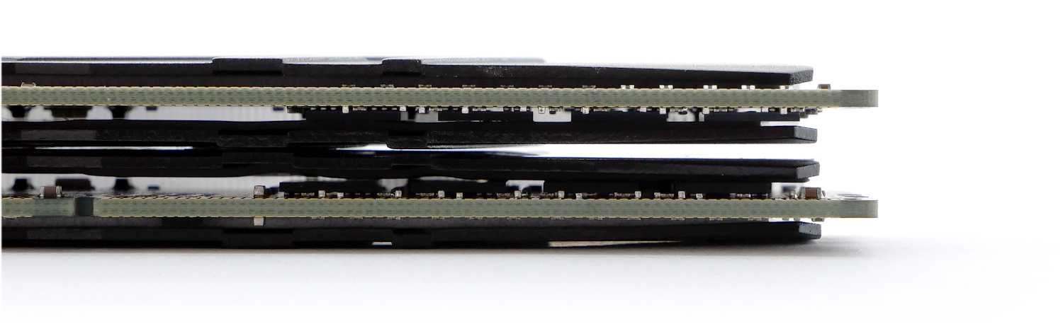 При взгляде снизу подчеркиваем одноранговую структуру и неполное прилегание радиаторов. Более подробную информацию о микросхемах мы предоставим в разделе тестирования.