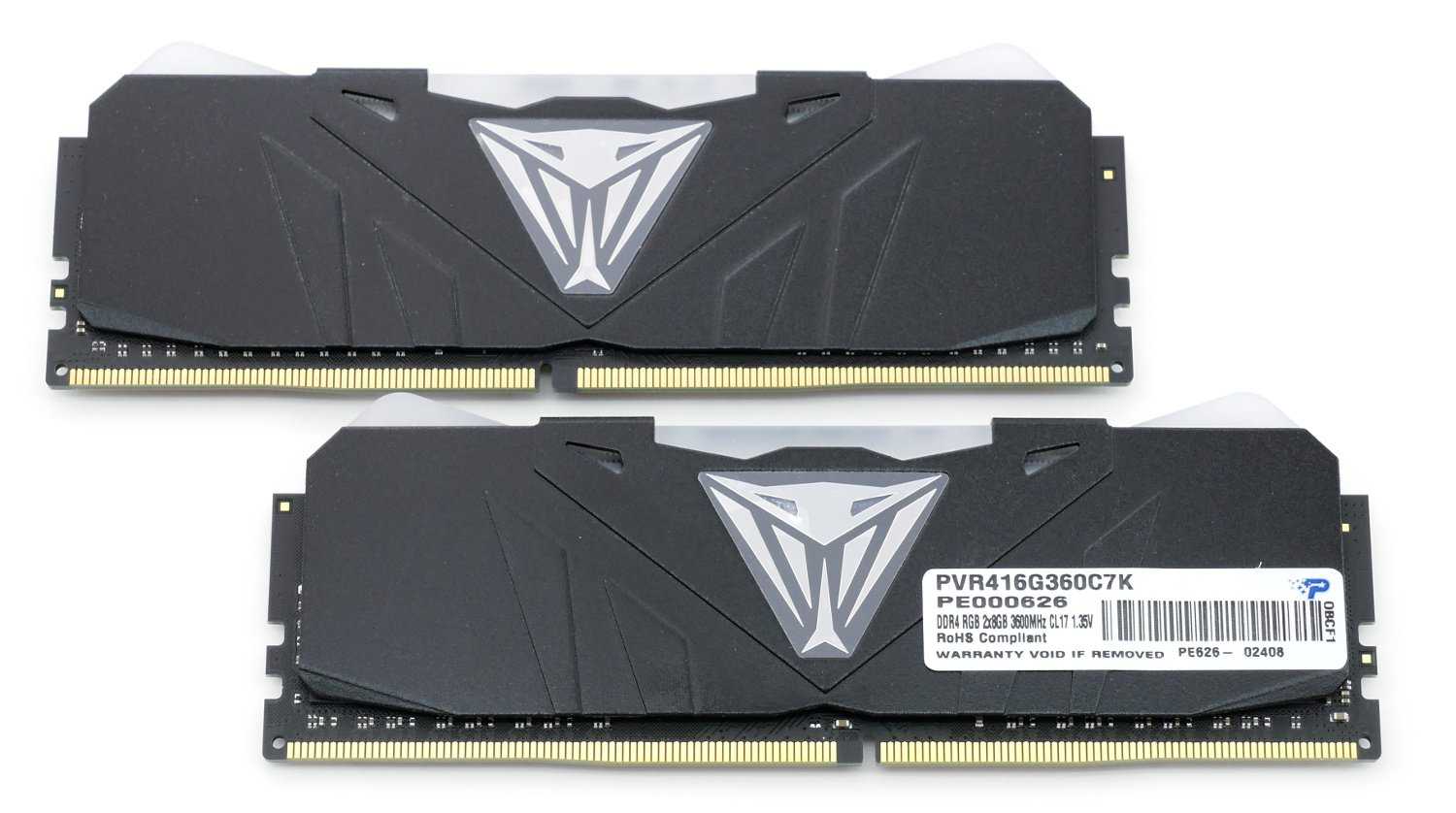 В наилучших традициях модули оперативной памяти Patriot Viper RGB 3600 МГц оснащены металлическими радиаторами симметричной формы. Фирменный логотип производителя украшает корпус новинки.