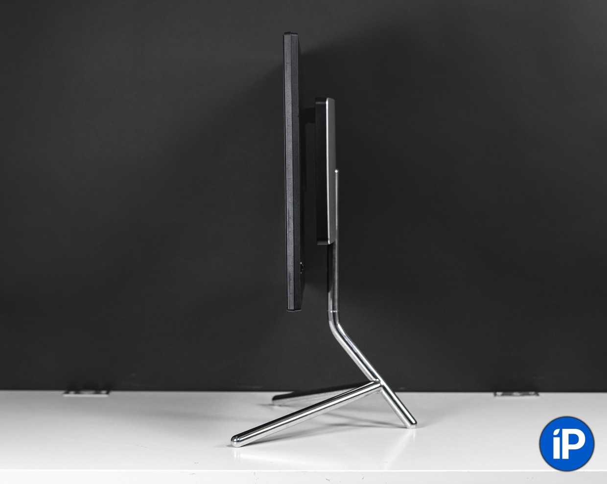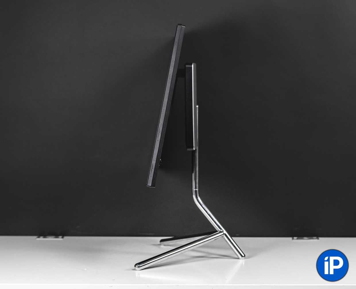 Если и этого окажется мало, вокруг свой оси экран вращается в диапазоне от −40º до +40º благодаря ещё одному шарниру, спрятанному в подставке.