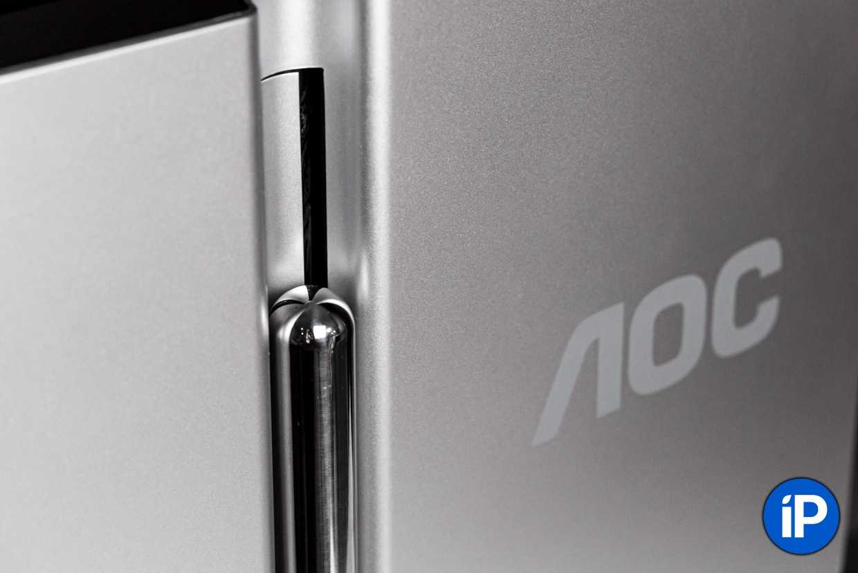 Вся электроника флагмана AOC вынесена в матовый металлический модуль на подставке, который соединен с корпусом матрицы шарниром, обеспечивающим вращение экрана в 2 плоскостях: