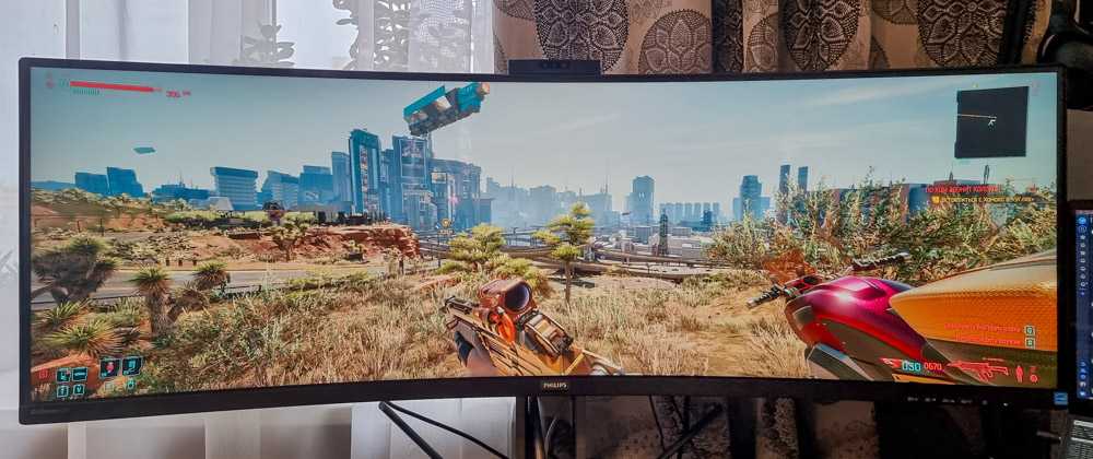На нем я прошел весь Cyberpunk 2077, причем 2 раза. Очень крутые ощущения и погружение в игру заметно глубже, чем с обычным монитором 16:9, так как периферийное зрение не цепляется за границы экрана справа и слева. Также я пробовал запускать RDR2 и PUBG. Главная проблема, с которой вы можете столкнуться во время игр на широком мониторе — повышенные требования к видеокарте, так как нужно обрабатывать картинку высокого разрешения и большее количество пикселей. Тут могу отметить, что RTX 2060 с 6 ГБ памяти, установленная в моем ноутбуке, в целом справляется неплохо, но конечно, не везде и не на максимальных настройках графики.